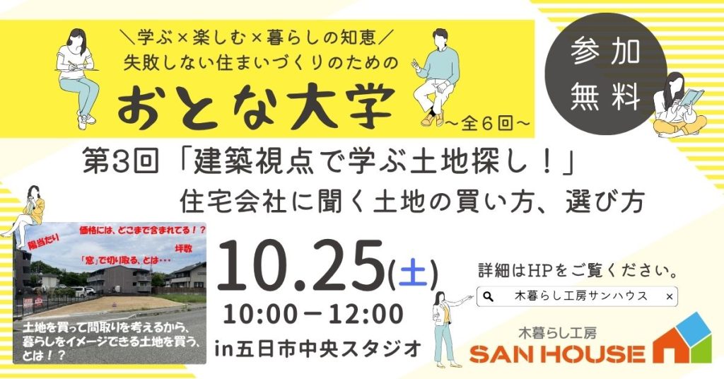 木暮らし工房サンハウスがお届けする「おとな大学2025」は、