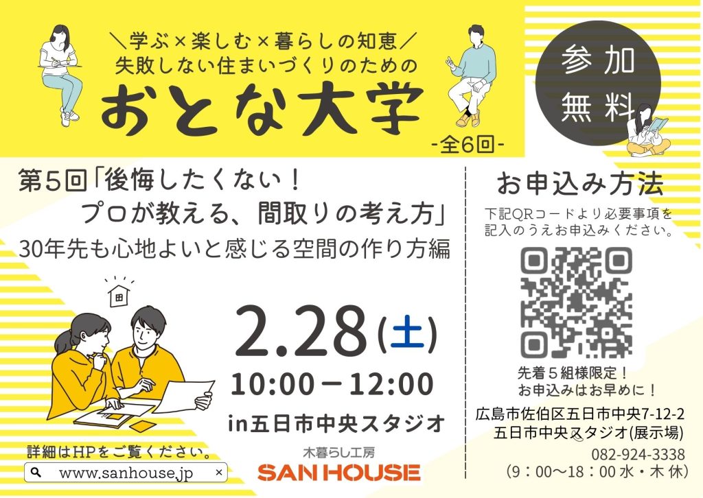 場所:木暮らし工房サンハウス 五日市中央スタジオ(広島市佐伯区五日市中央7-12-2)