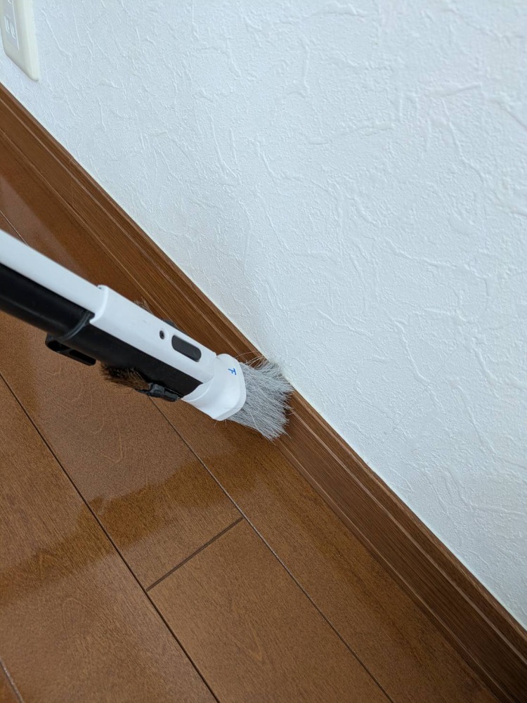 下用の毛ぼうきは、幅木の上、フローリングと家具の境、窓のサッシやレール、床下収納の回り、絨毯の房など、色々な箇所で使用しています。